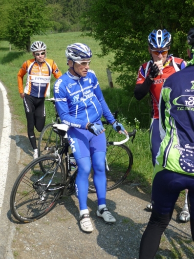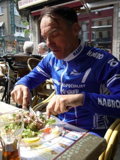« terug naar overzichtOp uitnodiging van 1 van de ploegleden heeft de ploeg een weekend doorgebracht in de Ardennen. Er werd 2 dagen getraind op de lastige hellingen in de omgeving van Durbuy. De omstandigheden waren prima, niet te warm, niet te koud, het bleef gelukkig droog. Natuurlijk werd het nuttige met het aangename verenigd en was er ook veel tijd ter ontspanning. De sfeer was goed en we hebben per dag ruim 1800 hoogtemeters gemaakt.